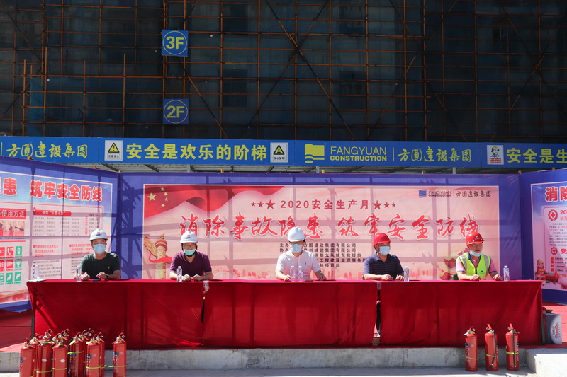2020年6月份是全國第19個“安全生產(chǎn)月”,為了深入學習宣傳國家關于安全生產(chǎn)的重要論述,進一步排查安全風險隱患,提高項目員工消防應急意識,堅決遏制重特大事故發(fā)生。結(jié)合夏季高溫易發(fā)火災事故的特點,2020年6月30日,圍繞“消除事故隱患、筑牢安全防線”的主題,方圓建設集團“城建·水墨芳林”項目部貼近實戰(zhàn),以戰(zhàn)為練,組織項目部全體人員開展消防應急演練活動。