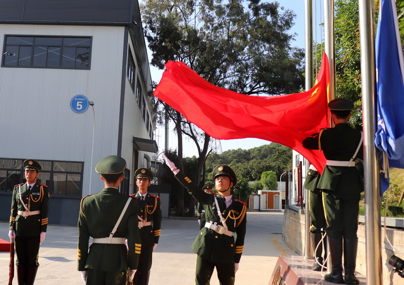 金秋時(shí)節(jié),惠風(fēng)和暢。國(guó)家住宅工程中心·方圓豪山研發(fā)基地在多彩秋色的映襯下,格外美麗。國(guó)旗臺(tái)下,全體員工整齊列隊(duì),儀容嚴(yán)整。國(guó)旗護(hù)衛(wèi)隊(duì)邁著鏗鏘有力的步伐,護(hù)衛(wèi)著鮮艷的五星紅旗昂首行進(jìn)至國(guó)旗臺(tái)。伴隨著激昂雄壯的國(guó)歌聲,主旗手奮力展旗,鮮艷的五星紅旗冉冉升起,全體人員肅穆而立滿懷崇敬之情向國(guó)旗行注目禮,愛國(guó)主義情懷在每個(gè)人心中再度激發(fā),民族自豪感由此更為厚重。