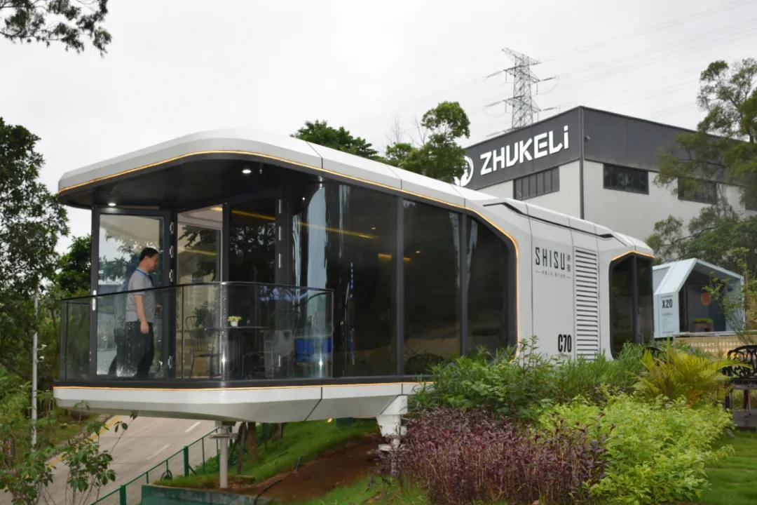 考察團(tuán)還實(shí)地體驗(yàn)了筑可麗詩(shī)宿營(yíng)地。映入眼簾,詩(shī)意與科技并存的詩(shī)宿太空艙、星宿、移動(dòng)微超等系列產(chǎn)品及采用筑可麗三維鋼網(wǎng)輕質(zhì)墻板的裝配式房屋,都讓河北省建筑裝飾業(yè)協(xié)會(huì)一行耳目一新。參觀過程中,大家紛紛拿出手機(jī)駐足拍照留念,在移動(dòng)影音魔盒前K歌一曲,網(wǎng)紅IP屬性盡顯無疑。