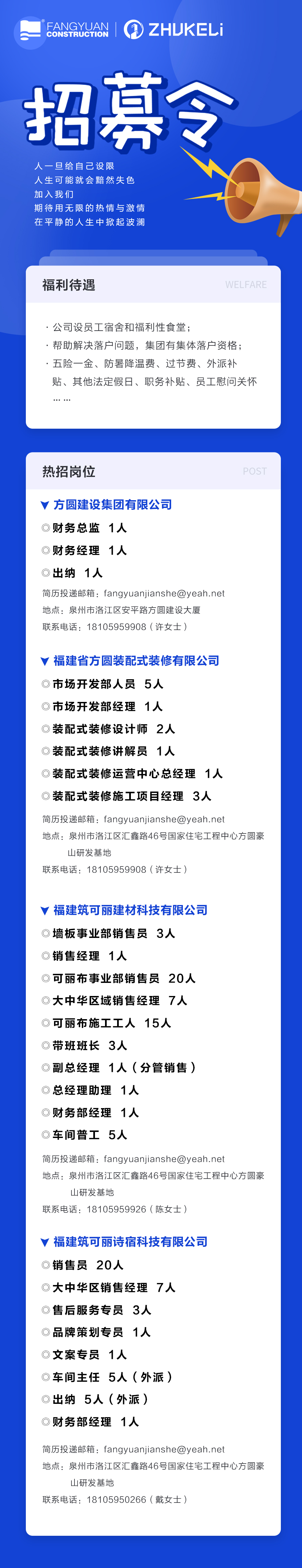 招募令丨方圓建設(shè)集團(tuán)&筑可麗2022年第四季招聘全面啟動(dòng)!職等你來(lái)!